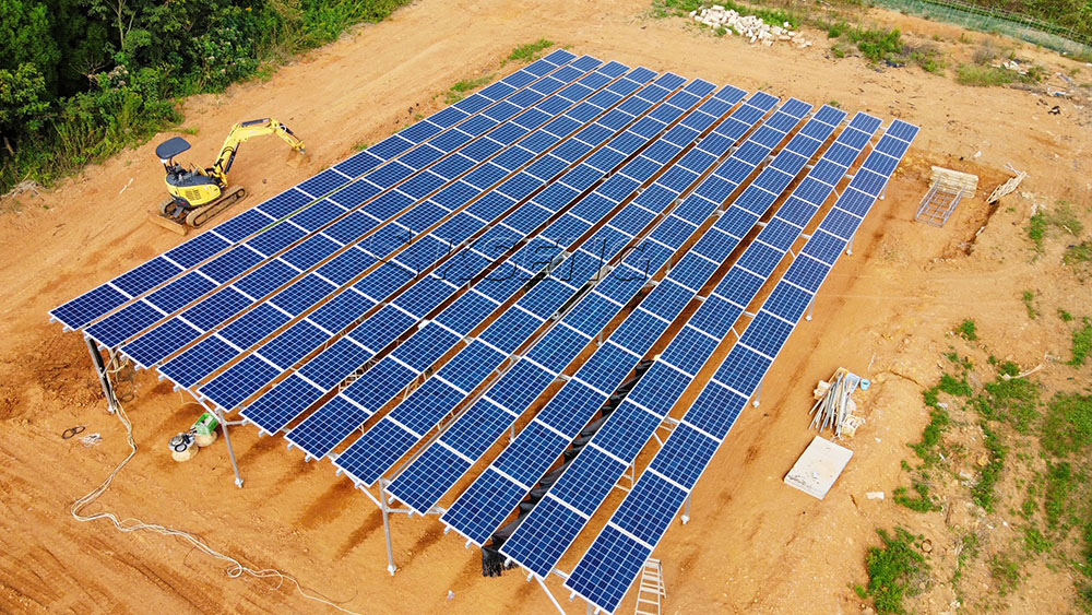 Het boerderijmontagesysteem maakt gebruik van op de grond gemonteerde zonnepanelen die strategisch zijn gepositioneerd om de blootstelling aan zonlicht en de energieproductie te maximaliseren.Het montagesysteem zorgt voor stabiliteit en duurzaamheid, waarbij rekening wordt gehouden met factoren als bodemgesteldheid, windweerstand en onderhoudsgemak.