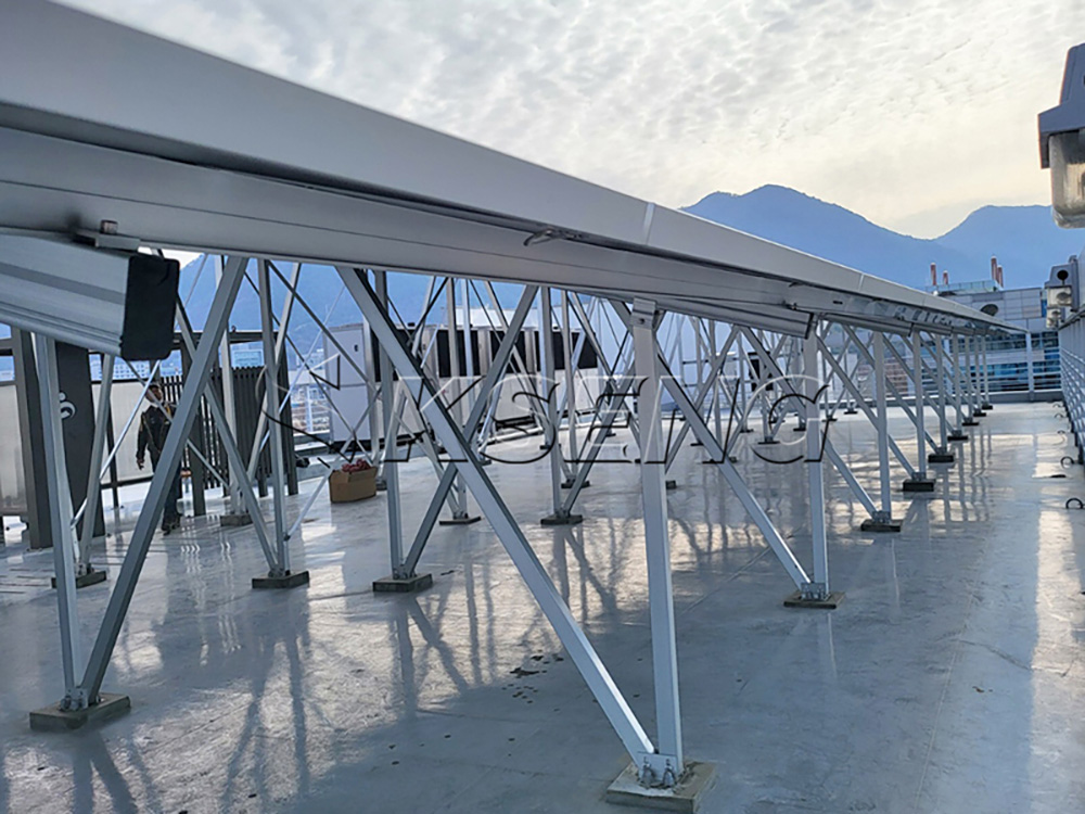 Bij het project wordt gebruik gemaakt van gespecialiseerde zonnebeugels die speciaal zijn ontworpen voor platte daken van cement, waardoor een veilige en stabiele bevestiging van de zonnepanelen wordt gegarandeerd.