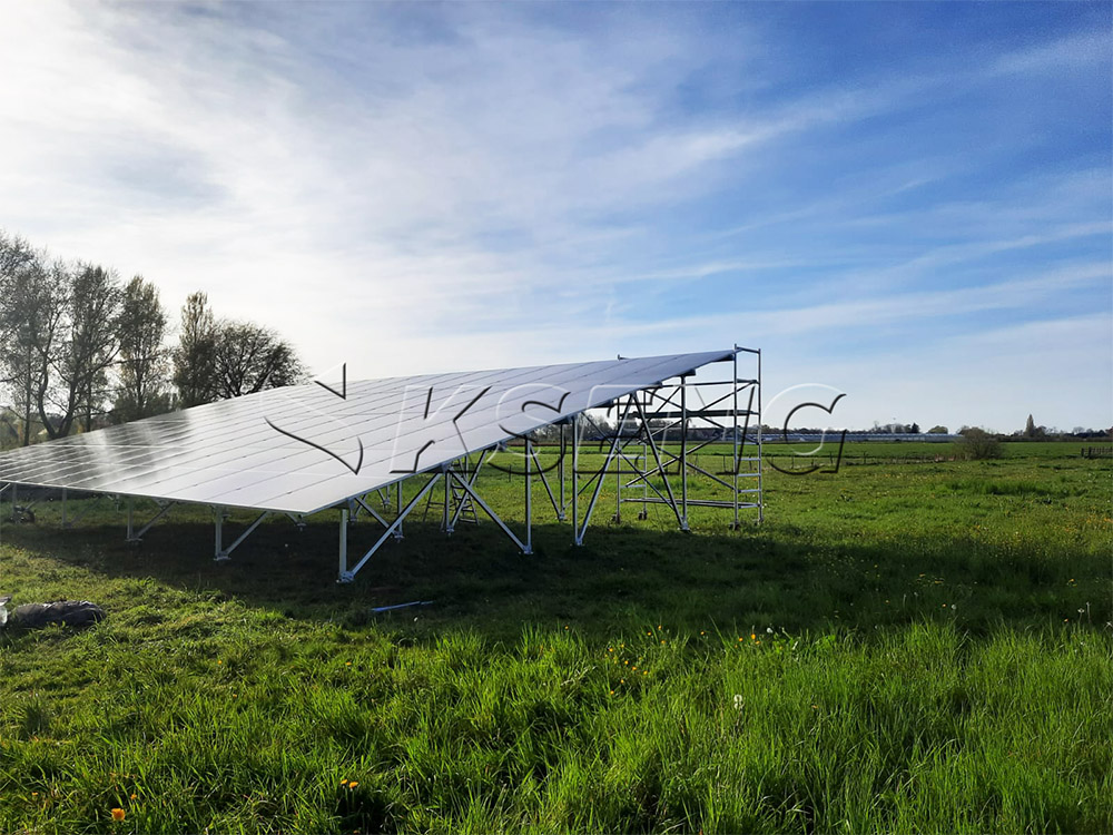 De in dit project gebruikte grondbeugels voor zonnepanelen zijn ontworpen om de zonnepanelen veilig op hun plaats te houden, waardoor stabiliteit en een optimale positionering voor maximale blootstelling aan zonlicht worden gegarandeerd.Deze beugels zijn gemaakt van hoogwaardige materialen die bestand zijn tegen corrosie en bestand zijn tegen verschillende weersomstandigheden, waaronder harde wind en hevige regen.