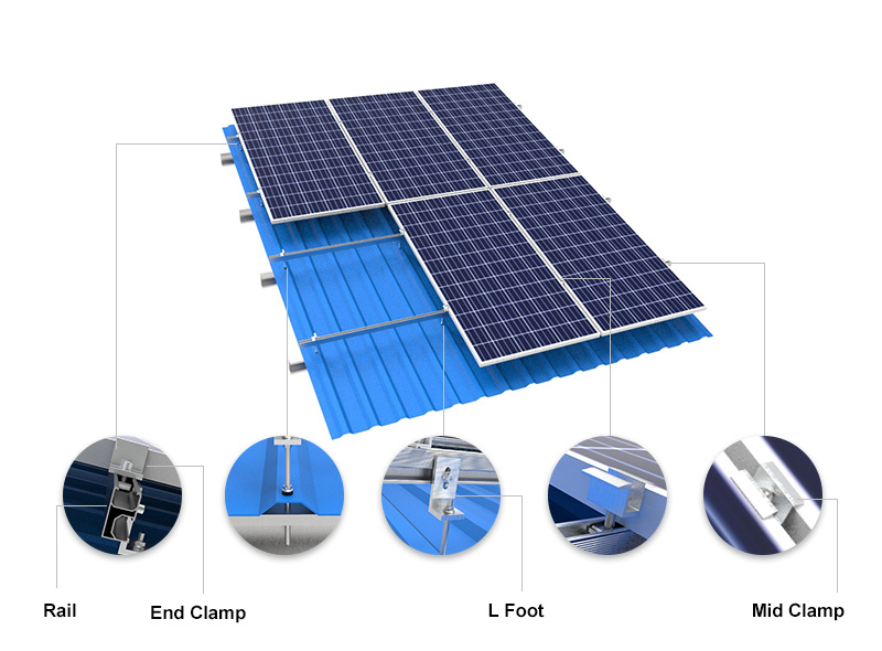 2. Eenvoudige installatie: het montagesysteem voor zonnedaken met L-voetoplossing is ontworpen voor een snelle en eenvoudige installatie. Er zijn doorgaans minder componenten en gereedschappen nodig, waardoor de installatietijd en -kosten worden verminderd.